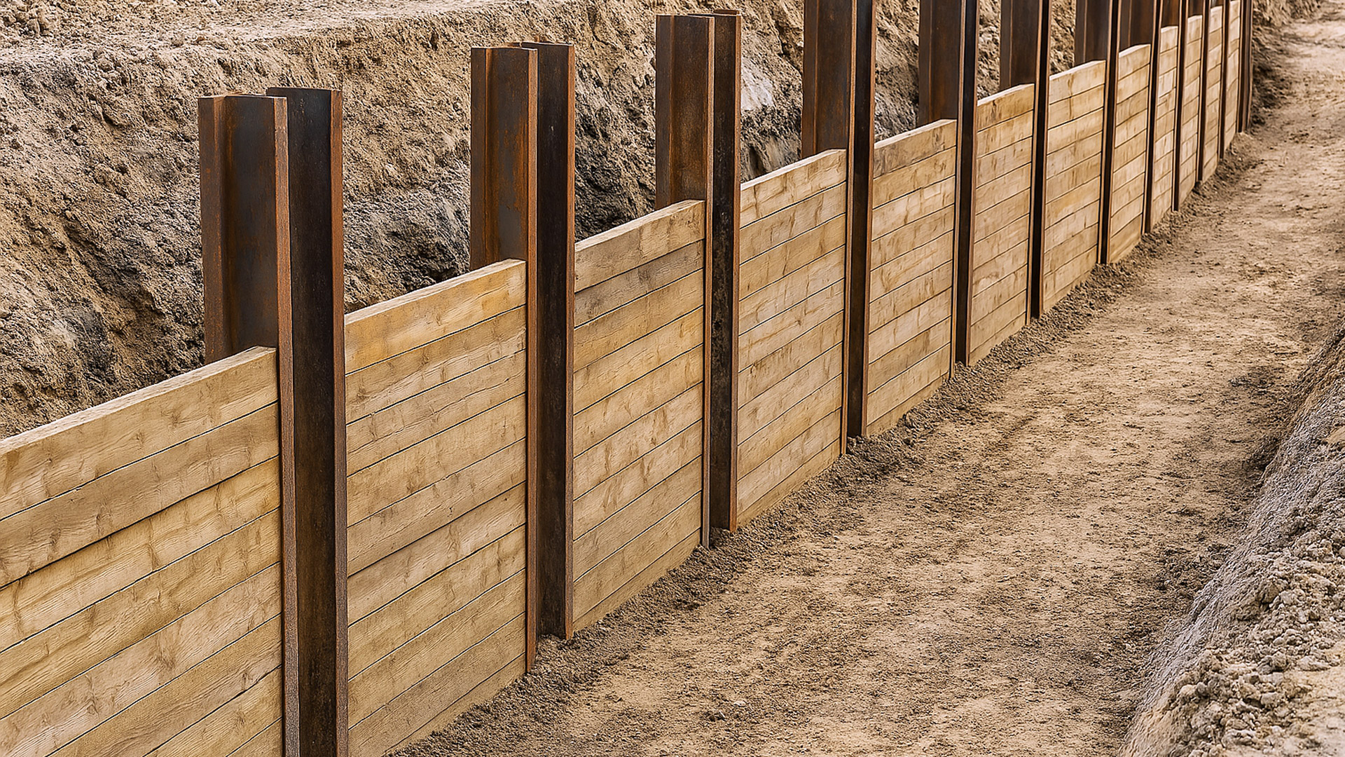 Der Berliner Verbau ist die wirtschaftlichste Lösung zur Sicherung von Baugruben. Wir bieten Ihnen die komplette Ausführung: Von der statischen Berechnung über das Einbringen der Träger bis hin zur fachgerechten Ausfachung.